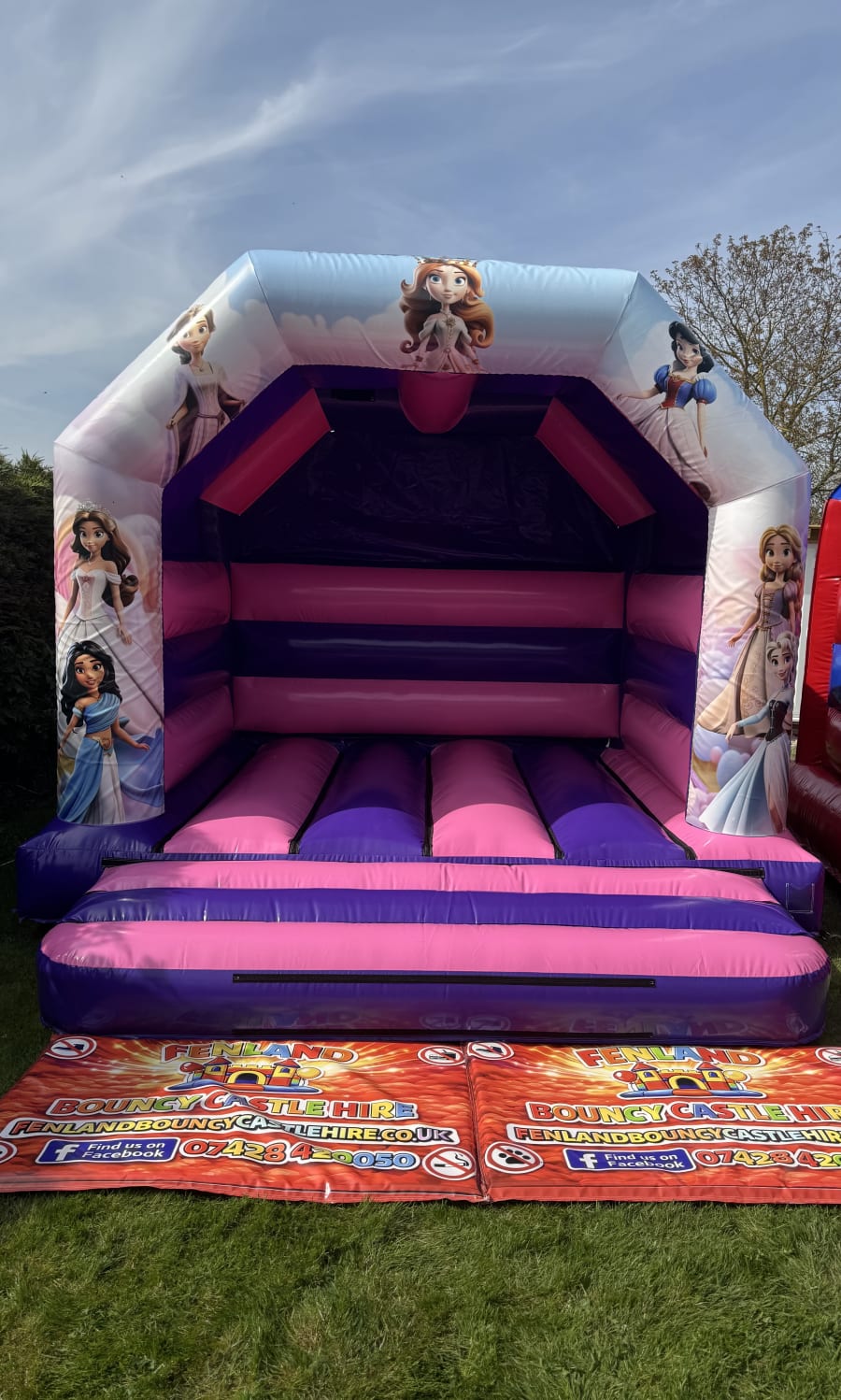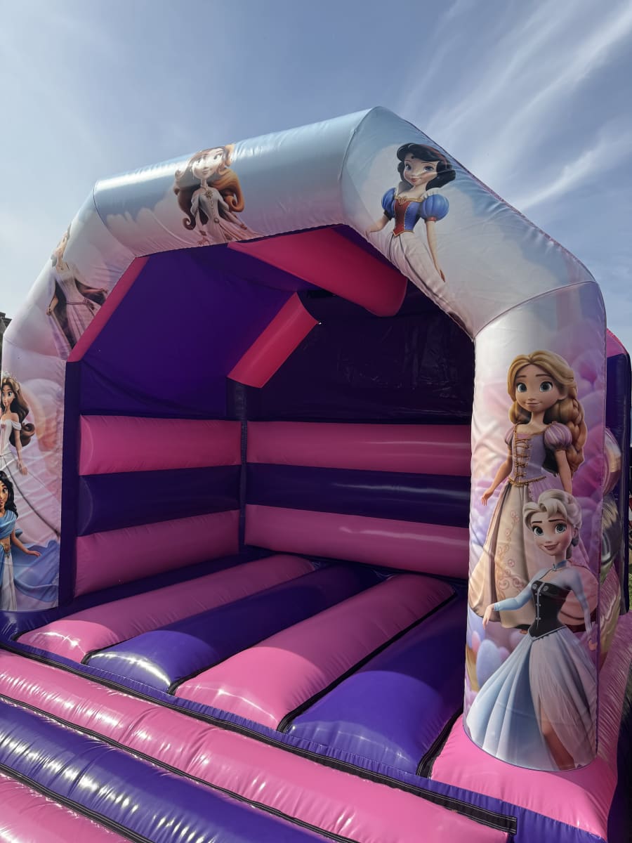 Our Princess-style Velcro artwork on the Pink & Purple 12ft x 12ft Bouncy Castle is a lovely choice for children who enjoy fairytale themes, magical characters and colourful party setups The soft pink and purple castle pairs perfectly with this artwork, creating a gentle, storybook feel that’s ideal for birthdays and special celebrations.