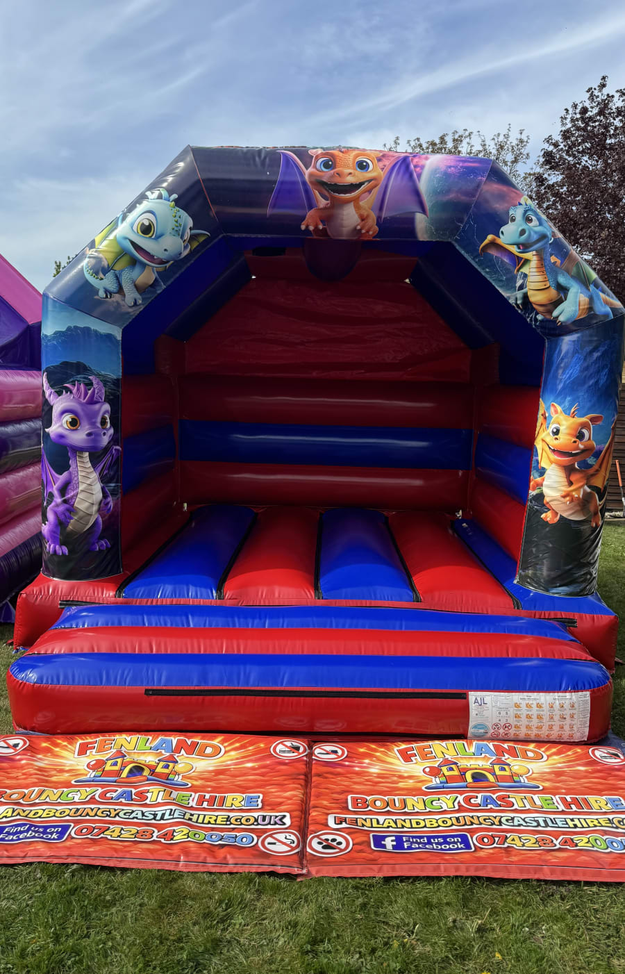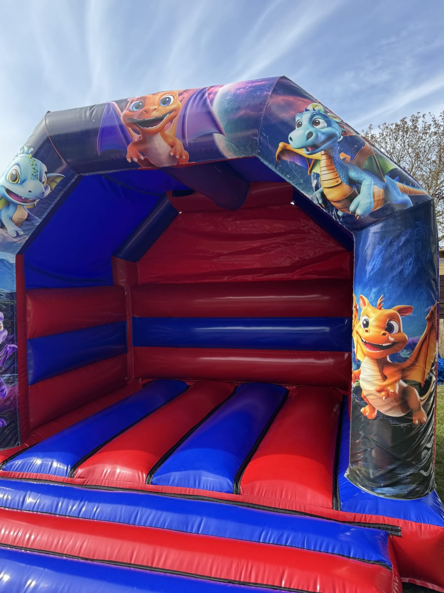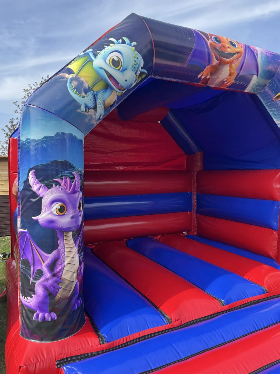 Our Fantasy Dragon Velcro artwork on the Blue & Red 12ft x 12ft Bouncy Castle is a brilliant choice for children who love adventure, imagination and magical creatures The bold red and blue base gives it a strong, energetic look, while the colourful dragon artwork adds that extra excitement that really brings the castle to life.